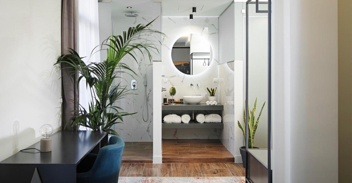 Deluxe Double Room. Providing free toiletries and bathrobes, this double room includes a private bathroom with a walk-in shower and a hairdryer. The air-conditioned double room provides a flat-screen TV with satellite channels, soundproof walls, a minibar, a tea and coffee maker as well as city views. ;